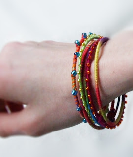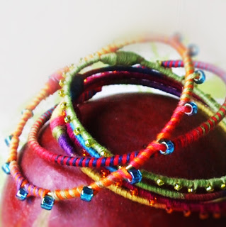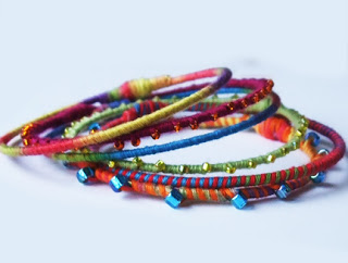 This is just a quick post. After my Rainbowlicious Hoops post, I thought about what else I could cover with embroidery floss (I have a huge bag of it in my room!). Using the same technique, I made a bright bangle set, which turned out great!