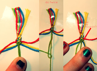 Step 8: Now repeat step 7, but working with 2R, 2Y and 2B. This is how the knots will go.