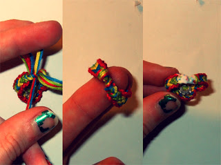 I knew I could make a tutorial for these. However, I didn't want to spend hours knotting to make a bracelet, so I made a ring! What's great about making rings is that they come together way quicker than a bracelet, which means you have time to make more!