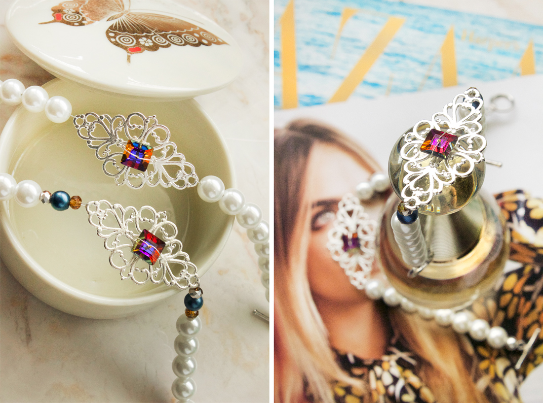 Filigree is always a good choice; the intricate swirls of metal and high shine add such a luxe touch to any piece of jewelry. And, when you add a Swarovski rhinestone and smooth pearls to contrast, a perfectly dressy-chic accessory is made.