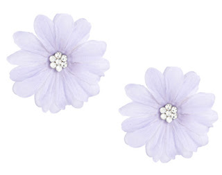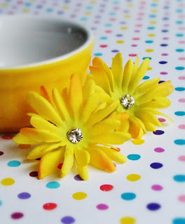 Step 1: Gather materials. Needed are two fake flower heads, two crystals (I used glass cabochons), two earring posts and hot glue.