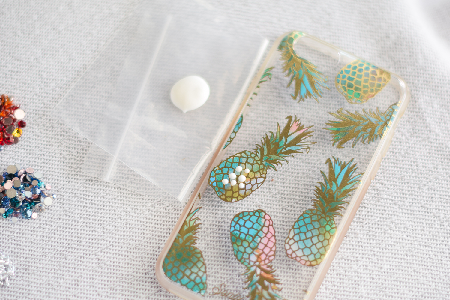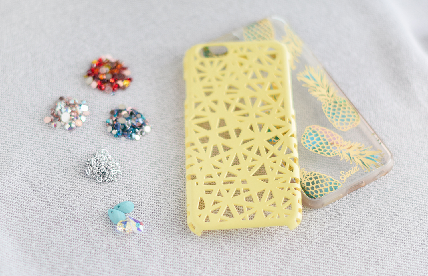 Use any phone case that you currently have - the crystals definitely spruce up the look. Or, if you’re like me, create a wardrobe of phone cases that you can switch out depending on your mood.