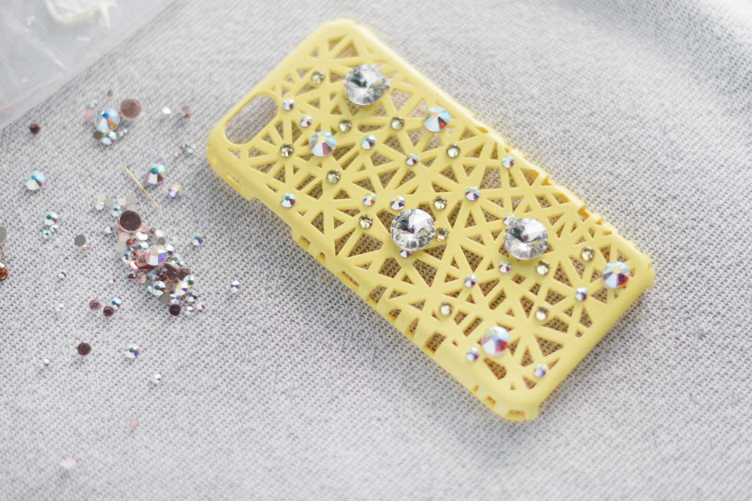 Gem-Tac works really well here at holding the stones. I made a crystal phone case a while back (featured in my China post), and it lasted me all the way till about a month ago, when the crystals started to come off. I was expecting it to last a month maybe, but it definitely surprised me. On a design like this (where the crystals are placed in a more singular style) you might get a little less life out of it - pack the crystals tightly together to make it last longer, it’s got more strength.