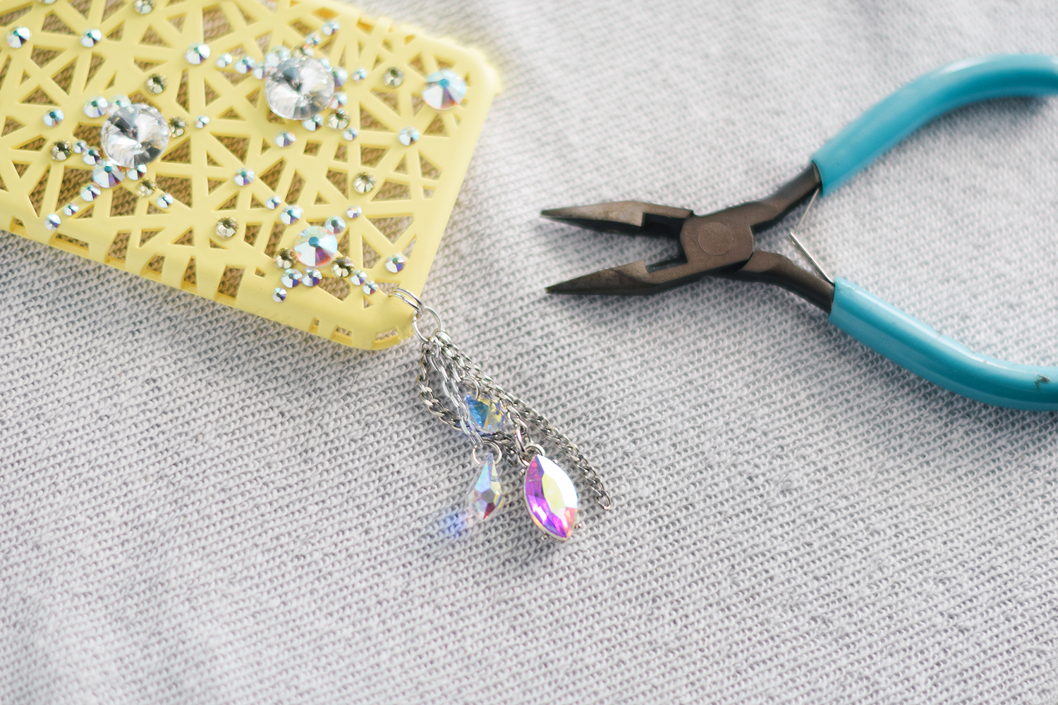 Text in style with these DIY crystal phone cases - mixing sparkly gems, chains and charm dangles creates killer tech accessories that are totally customizable.