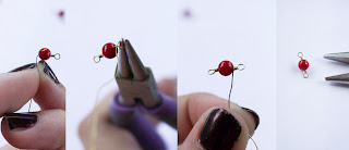 Step 2: Add on your smaller 4mm bead. End with another wrapped loop, to finish the link. Cut the wire flush again if needed. Repeat steps 1 and 2 for your second 4mm bead.