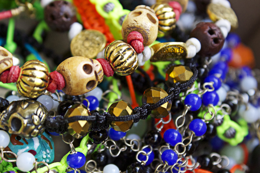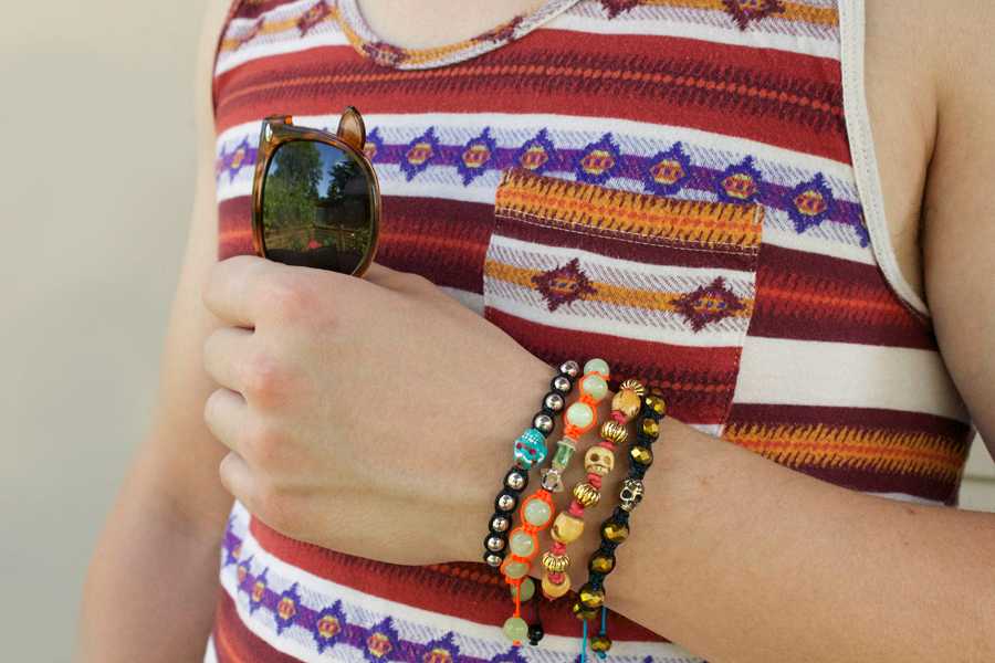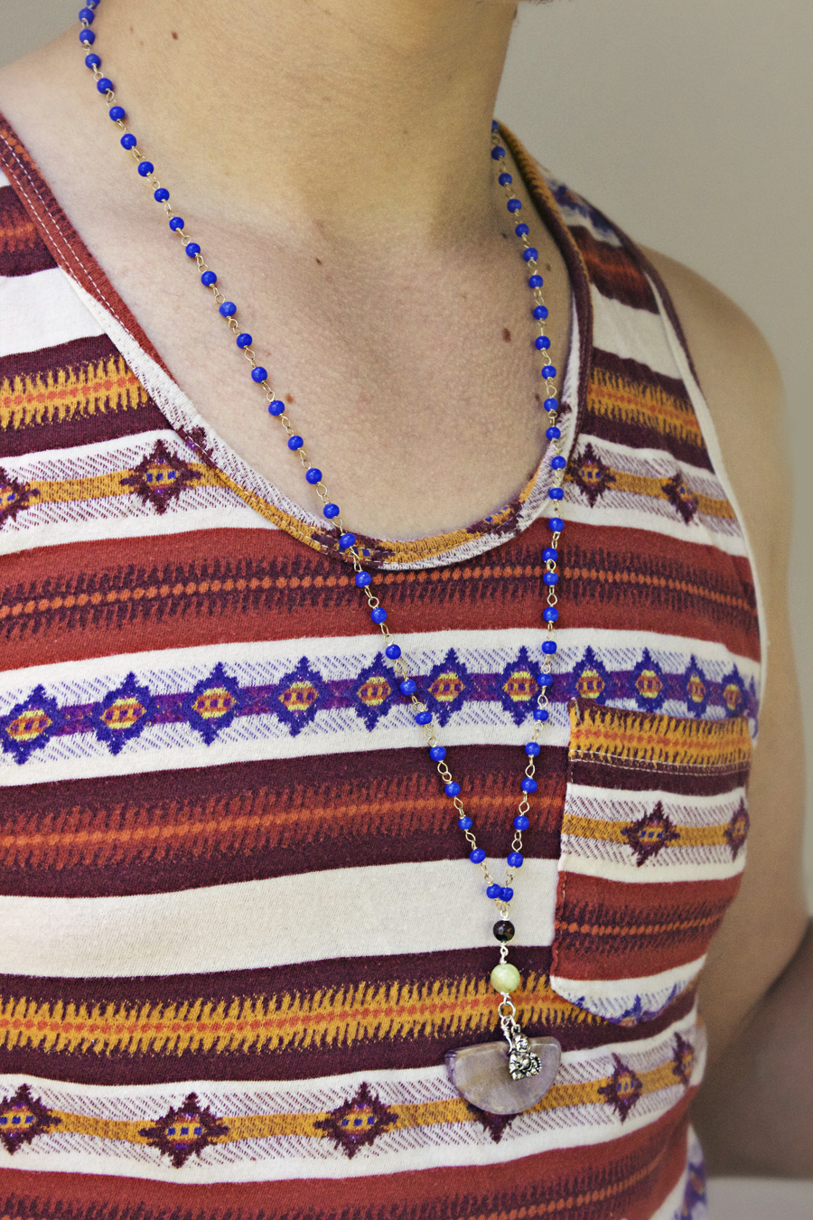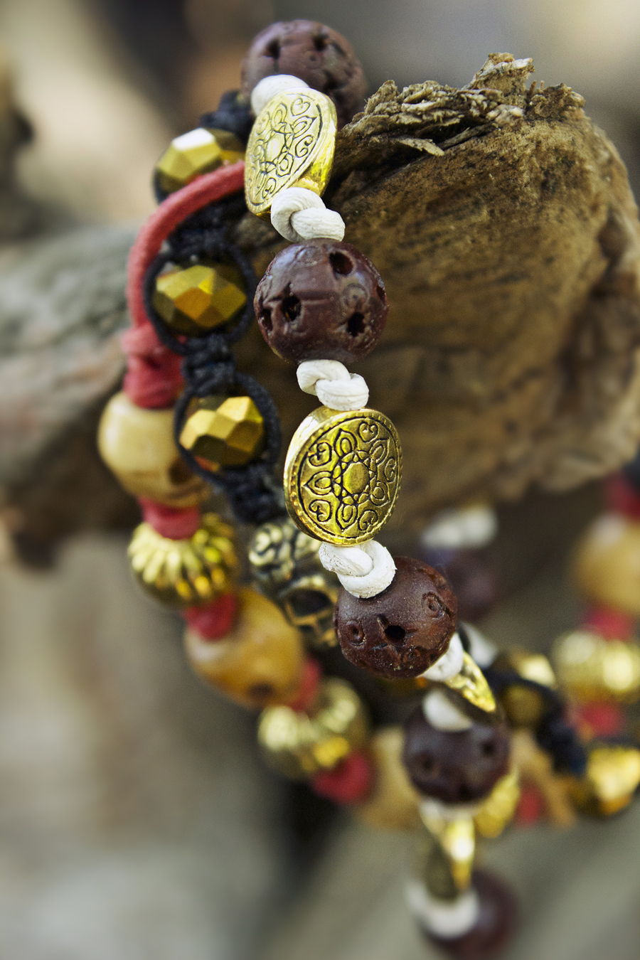 From handmade Peruvian ceramic beads, African bone, hand-carved wood, dyed leather, neon knotting cord, Czech glass and more, I’ve combined them all to create a bold neo-bohemian look.
