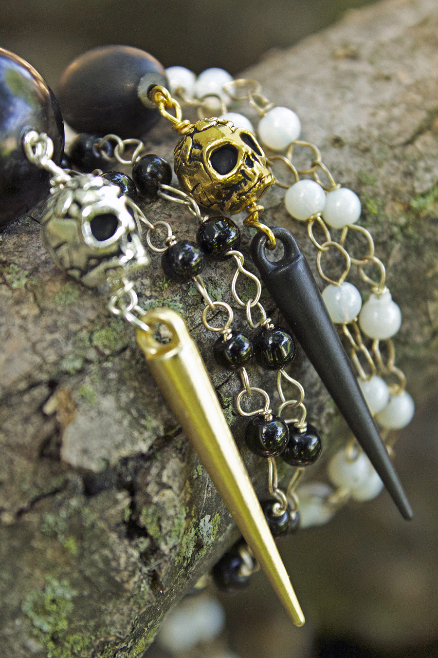 For the gothic look, metal skulls are offset by a bright neon pop!