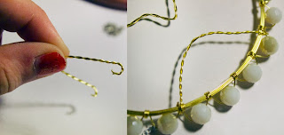 Step 5: Continue wrapping, until you have finished the whole frame. Your amount of beads and amount of wire will vary depending on what size you want your dreamcatcher. Mine is about 4.5″ in diameter. Cut the wire flush when you finish wrapping.