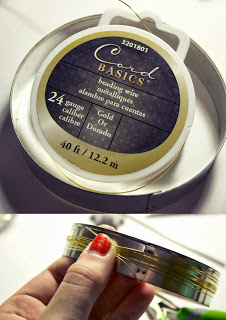 Step 3: With your gold wire, wrap about 10 times around a biscuit cutter or glass to create a large frame for your dreamcatcher. Where both ends meet, take a 3″ piece of wire and wrap around these ends to secure, then cut the wire flush.