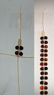 Now, you will do a square knot with the beads on the outside (instead of the inside like in the Square Knot Bracelet Tutorial).