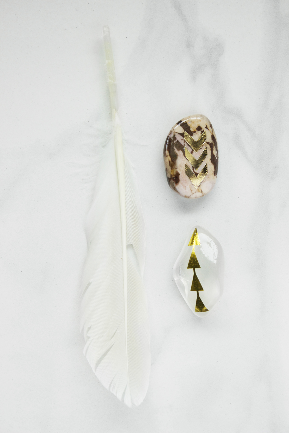 For all my gypsy souls - the power of gemstones paired with the high-shine of… metallic tattoos?! Yes, I did a little experiment, and metallic tattoos (the like MUST HAVE accessory of the summer) do work on surfaces other than skin. I played around with adhering them to rocks, because those are the types of things I do in my free time. Anyway, this crazy experiment worked!