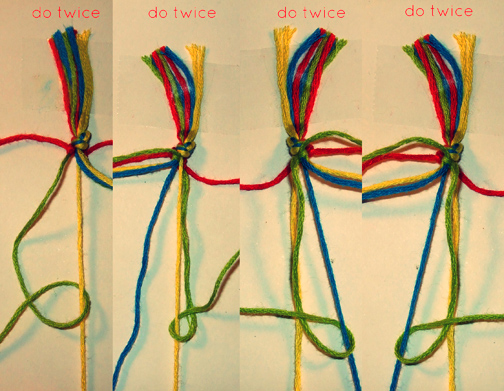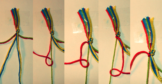 Step 8: Now repeat step 7, but working with 2R, 2Y and 2B. This is how the knots will go.