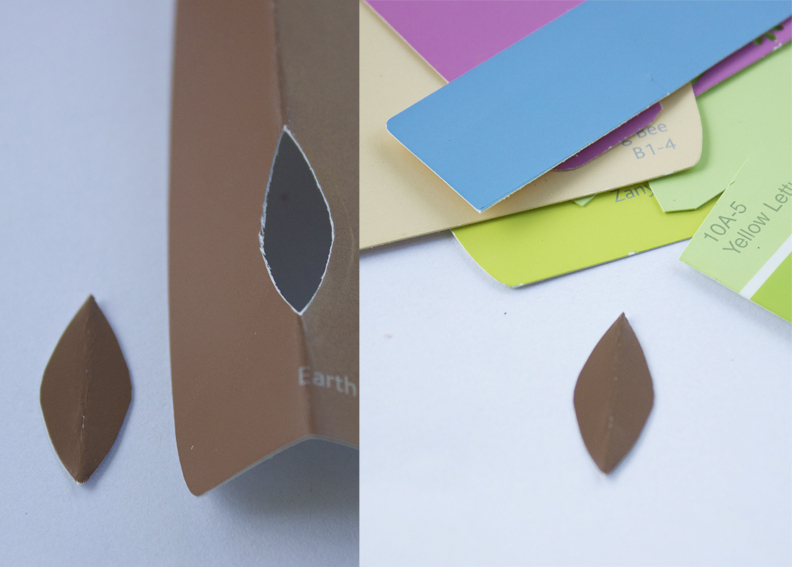 Step 2: Cut your petals. Cut a template out of another paint chip. My petals measured a little less than 1" long, but you can make yours any size you want.
