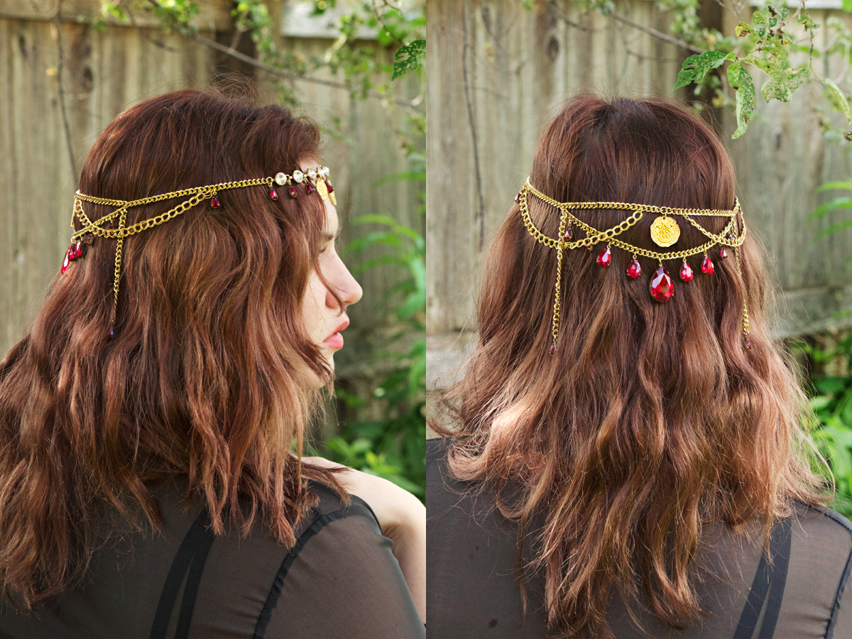 If you know me, you know I love a good headpiece. They are some of my favorite things to make because there are no rules, and I can constantly experiment. A simple chain and charm headband can add a minimal-chic look to your outfit, where something like this can totally stand out.