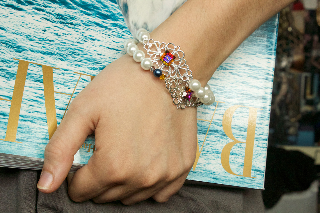 Filigree is always a good choice; the intricate swirls of metal and high shine add such a luxe touch to any piece of jewelry. And, when you add a Swarovski rhinestone and smooth pearls to contrast, a perfectly dressy-chic accessory is made.