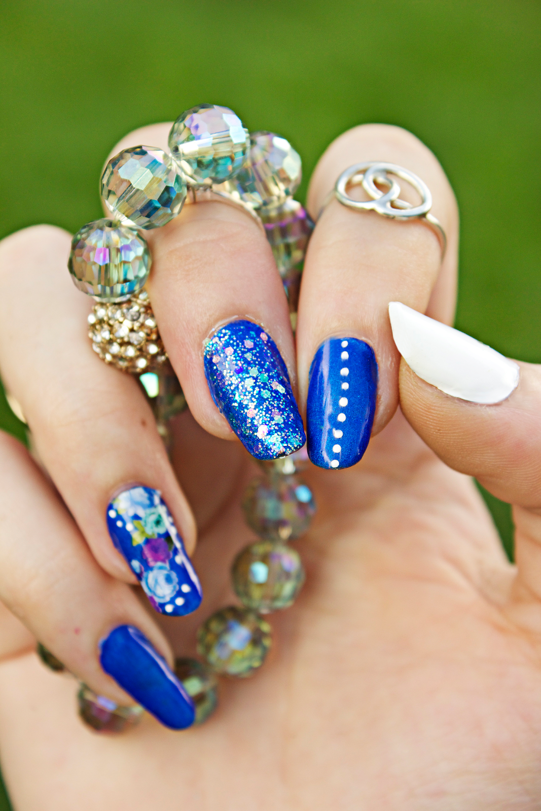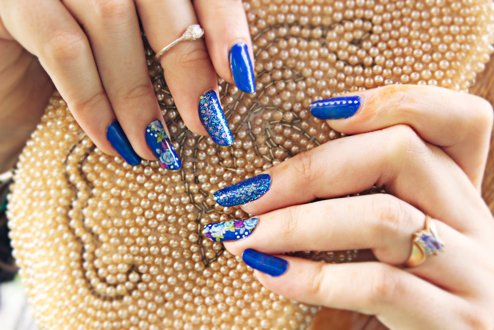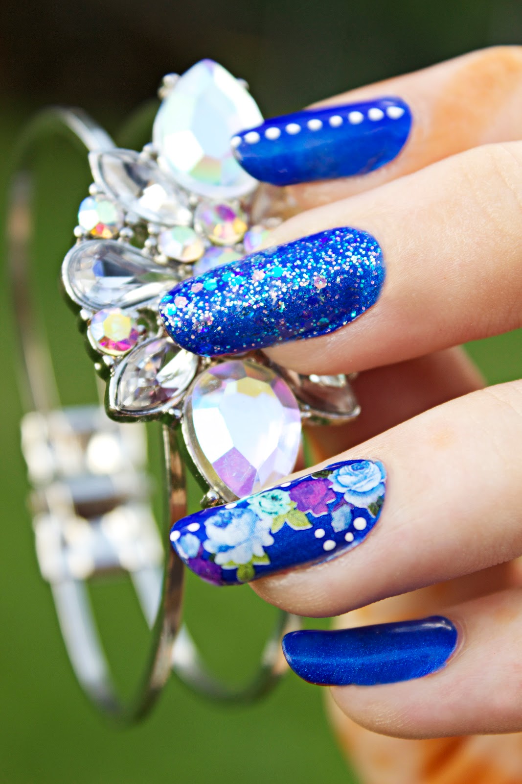 I’ve got here a vintage-inspired manicure using Born Pretty‘s rose nail decals, plus extra glitter and polka dots.
