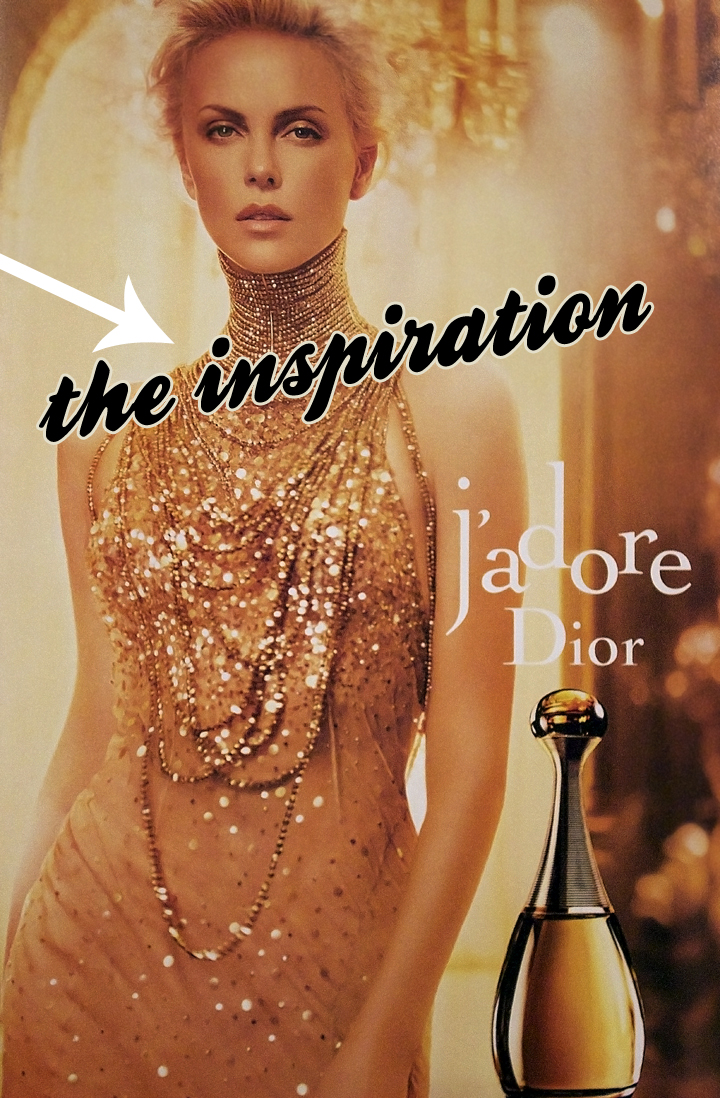 I used varying shades of golds and browns, and finished with a buildup of glitter at the top of the nail to mimic the bejeweled look of the dress.