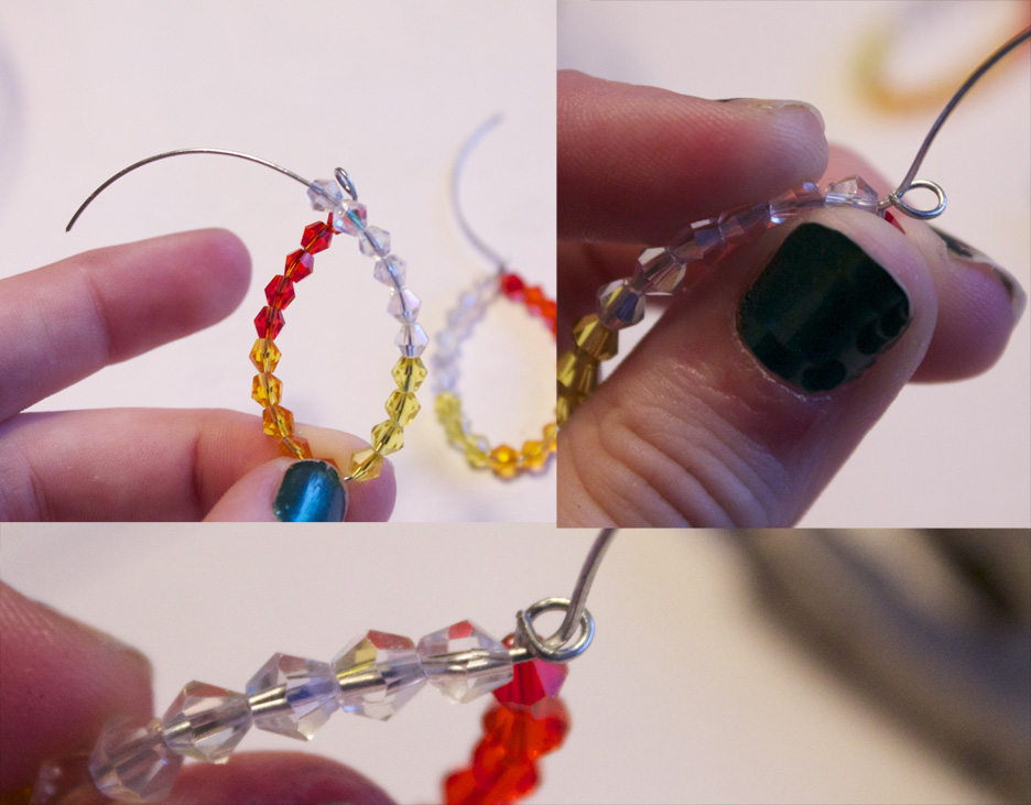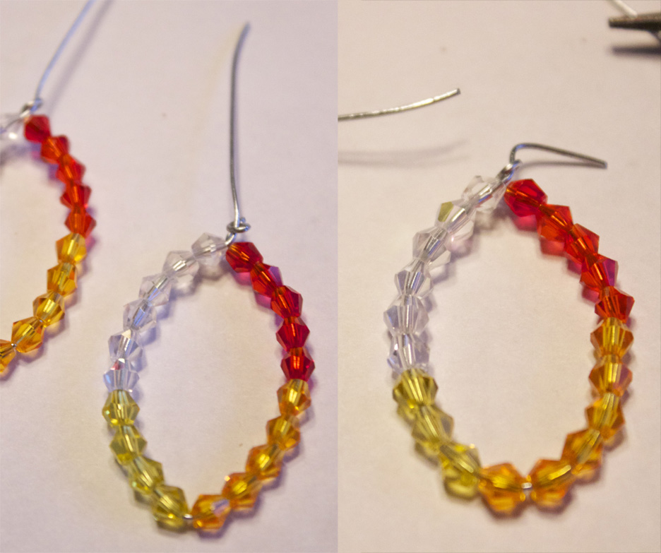 Step 6: Finish off the wire by making a loop. Attach this loop to an ear wire, I am using kidney earwires here but if you have fishhooks that will work too.