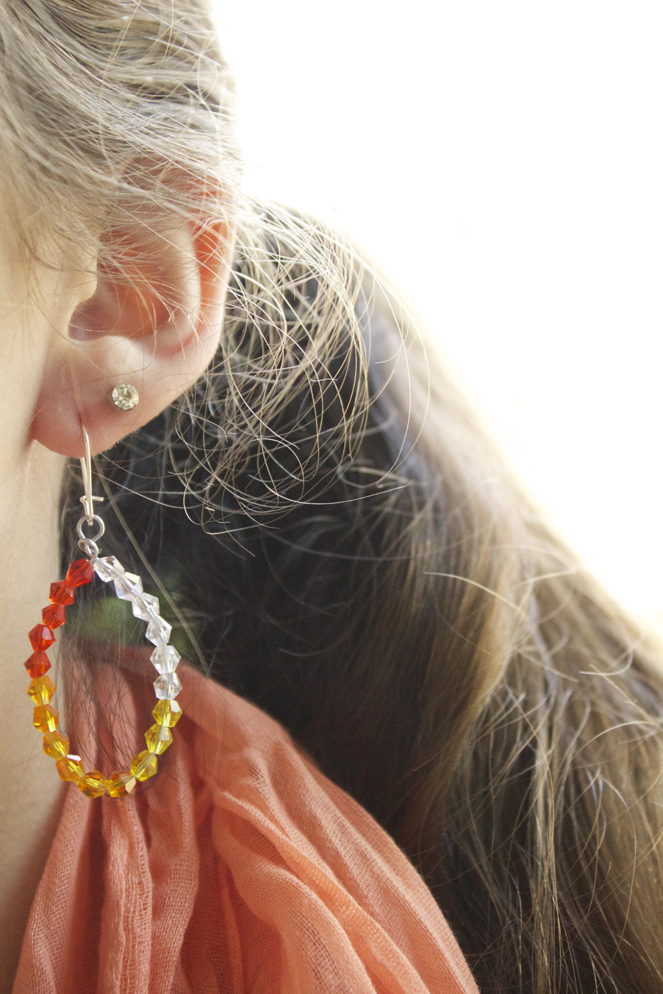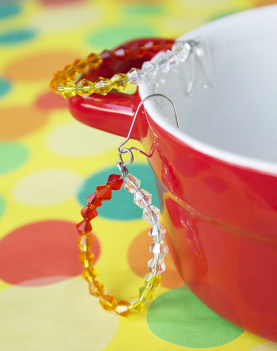 You can create a similar look by using like-colored crystals in a spectrum to make easy earrings!