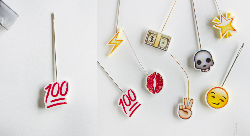 So anyways, I totally grabbed a pack and decided to get to work. I knew I wanted to make some sort of kitschy-style statement necklace, because, well, why not? Emojis have attitude, and while I usually don’t love super-bright, in-your-face colors, they totally work here.