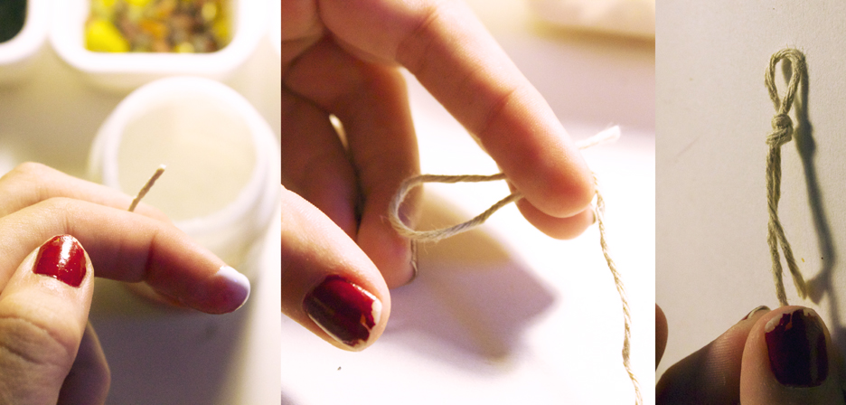 Step 1: Cut about a 3″ piece of wire or so, and make a small loop at top, about 3/4″ away from the end, wrapping the excess wire to close. It should look like the last picture. You only want about 3 wraps so if you have extra wire, cut it flush.