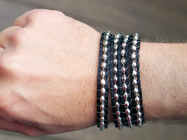 As you all already know, the Punk fall trend is in full swing! So for this tutorial, I decided to make a cool wrap bracelet with slick metal beads that can go with basically anything. Girls or guys can wear it, as it is pretty neutral and would be a great addition to any outfit.