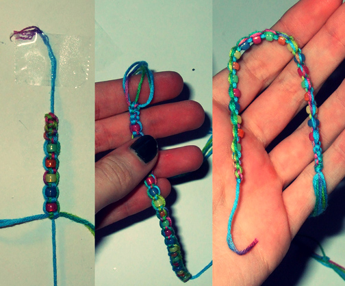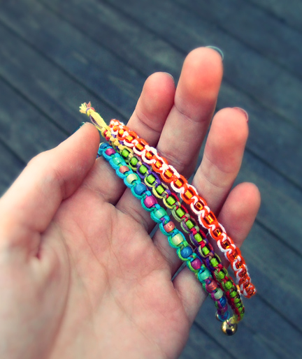 The first installment in my friendship bracelet-inspired tutorial section. This tutorial is a great, easy way to ease into the craft! These are addicting to make; they finish up quick, and you can mix and match colors to your heart’s content. This tutorial will also tell you two ways of finishing these bracelets; one with a magnetic clasp, the other with a simple bead and loop closure.
