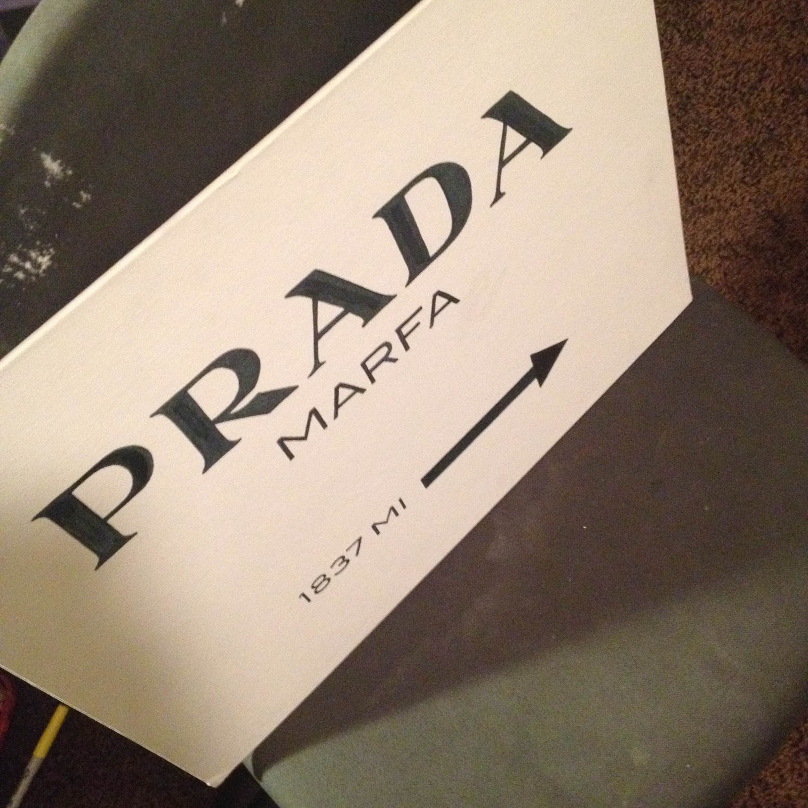 I chose this Prada “Marfa†sign to create on a canvas- simply drawn, not painted! Read below to copy me, you know you want to.Â