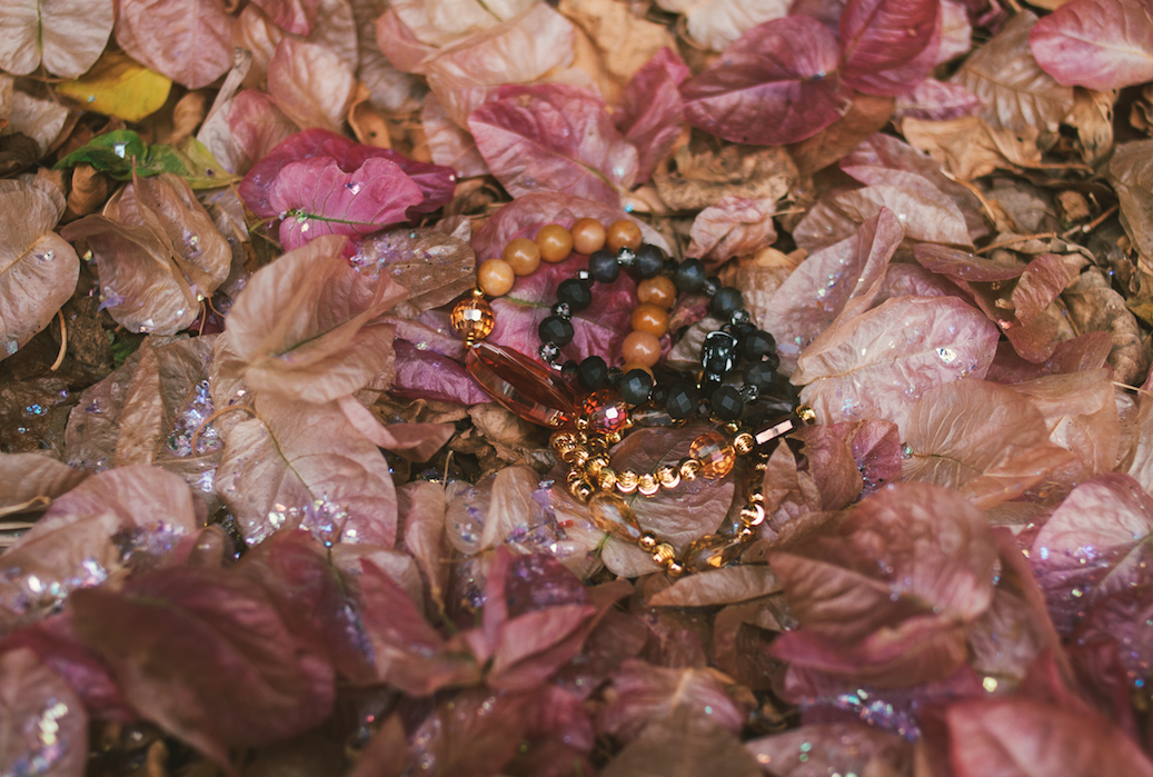 My school of thinking is to pair anything super luxe with something tattered, torn, or edgy. Hence the completely destroyed, tattered shirt (Urban again) and vegan leather pants, to balance out the entire mood. My choice of accessories here took a complete 360 and focused on golden tones. I stacked stretch bracelets (super easy to make) in crystal colors to get an effortless shimmer, and finished with layered necklaces in varying lengths. It’s kinda like you threw everything together, but it has a certain order to it. Organized chaos. Don’t ever take anything too seriously.