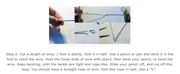 Step 2: Cut about a foot of your gold wire. Twist it like in my UO Heart Necklace (below) but DO NOT fold in half into a “V”. Instead, form around your cookie cutter, and with the excess wire create a top wrapped loop. Cut flush. Make 8 stars.