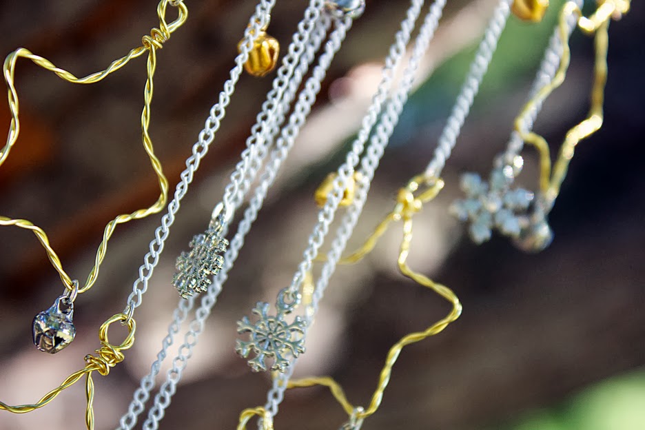 Step 7: Add your jingle bell charms, I used only the silver and gold ones to keep with the theme. Add these in a nice pattern you like, varying the lengths but mirroring each side. I added a silver bell to the bottom of each star. You can look at mine and use it as a pattern. Attach each with a jumpring.