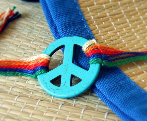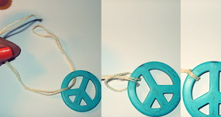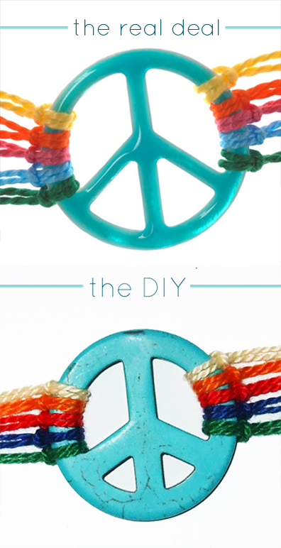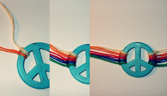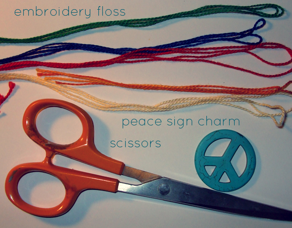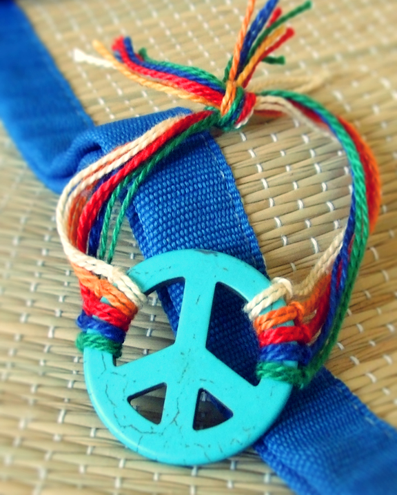 All that's needed is a large peace-sign pendant, and some embroidery floss. Too easy, too cool!