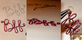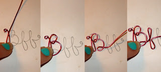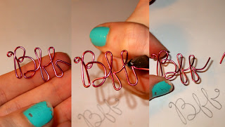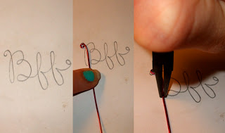 Step 2: Draw the form for your pendant. Make it look like this, or as close as you can get. The dimensions of the BFF are about 1.25" long and .75" high. Now, take a long piece of your craft wire, about a foot or so. Start at the loop above the "B". Simply curl the wire with round nose pliers to start. Then, "trace" your BFF with your wire, using your pliers and fingers to hold and bend the wire in place.