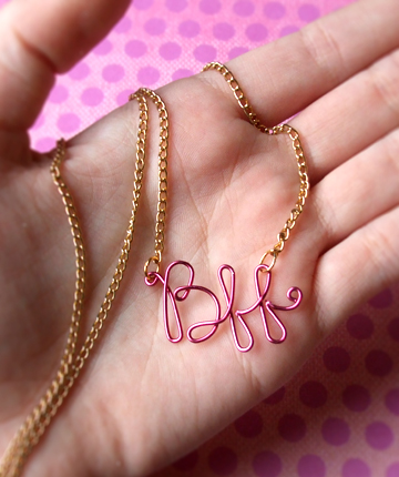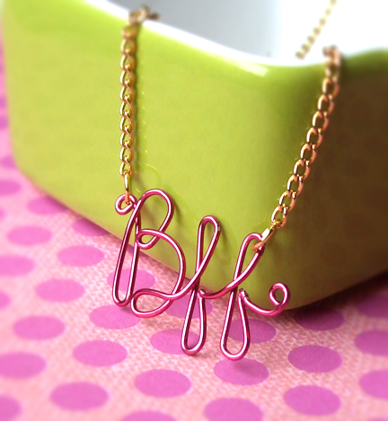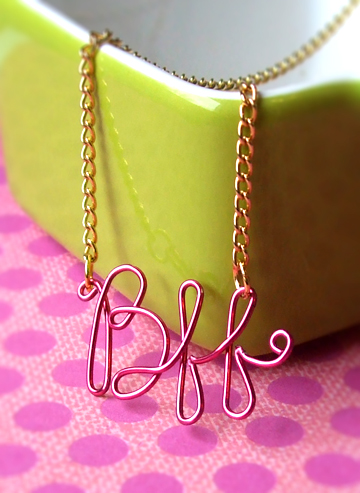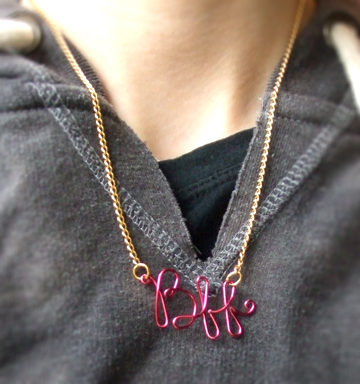 These necklaces are super easy to make; you literally trace your handwriting with wire. Best part is you can use any color of craft wire to suit your bestie's tastes. Make one for them and one for yourself! Add charms, even, to the bottom of the f's for some sparkle maybe? Go wild!