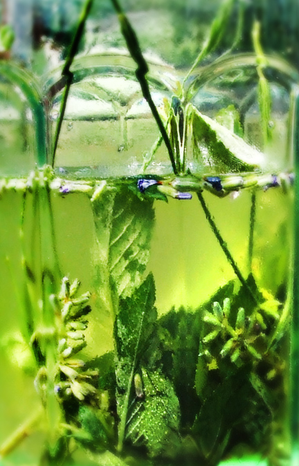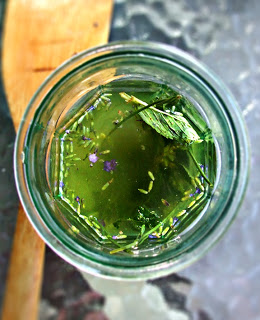 Gather a generous handful of fresh herbs from your garden, if you have one. I used a combination of lavender and spearmint.