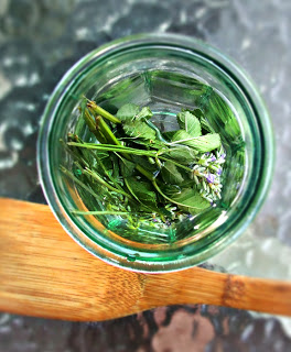 Step 3: Get a wooden spoon. Muddle all these ingredients together; really break up the herbs, and if you have tea bags you might want to break open the bag and dump the herbs into the water to make sure you get the most out of your muddling.