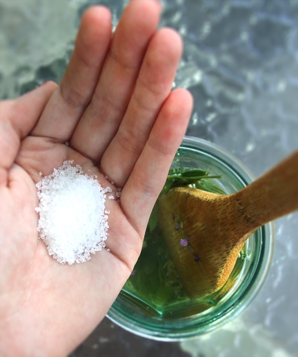 Step 2: The magic ingredient; sea salt. It will mimic the saltiness of the sea, and give your hair that beach texture. Get a handful of sea salt and add this to the glass.