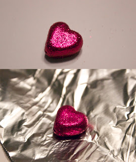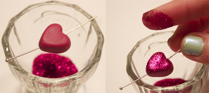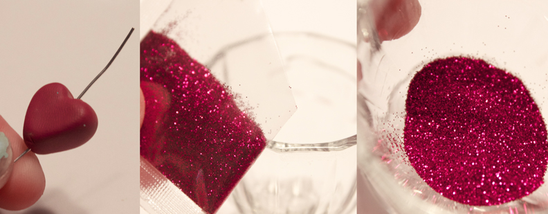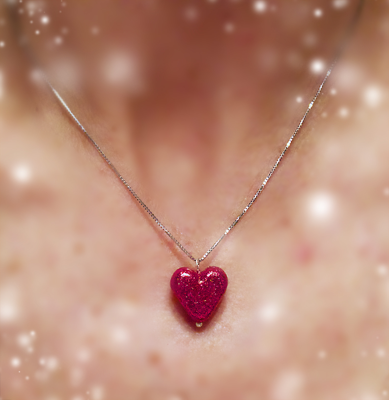 Make yourself a cheap-o diamond heart necklace out of clay and glitter.