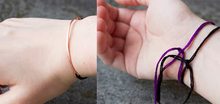 These literally come together in minutes flat. I didn't even bother to braid the ends, and used these more of like a friendship-style bracelet.
