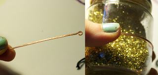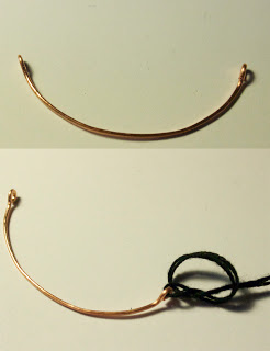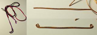 Step 2: I cut about 3" of my wire and looped each end. If you have smaller or larger wrists you can cut accordingly, adding or subtracting an inch. Cut about 1 foot of your floss, and bend in half. Cut another foot and fold in half again. These will be your tying pieces.