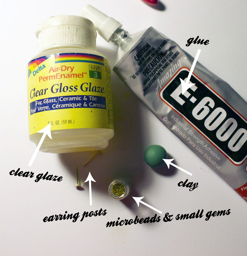 Step 1: Gather materials. Needed are earring posts, Sculpey Polymer Clay