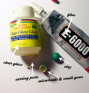 These Pot 'O Gold Earrings feature metallic microbeads and gems for sparkle. Microbeads are tiny little hole-less beads that are used for scrapbooking and nail art, but why not use them in jewelry? I actually found these at the dollar store, but you can also find them at craft stores or online even. Martha Stewart Crafts also makes them.