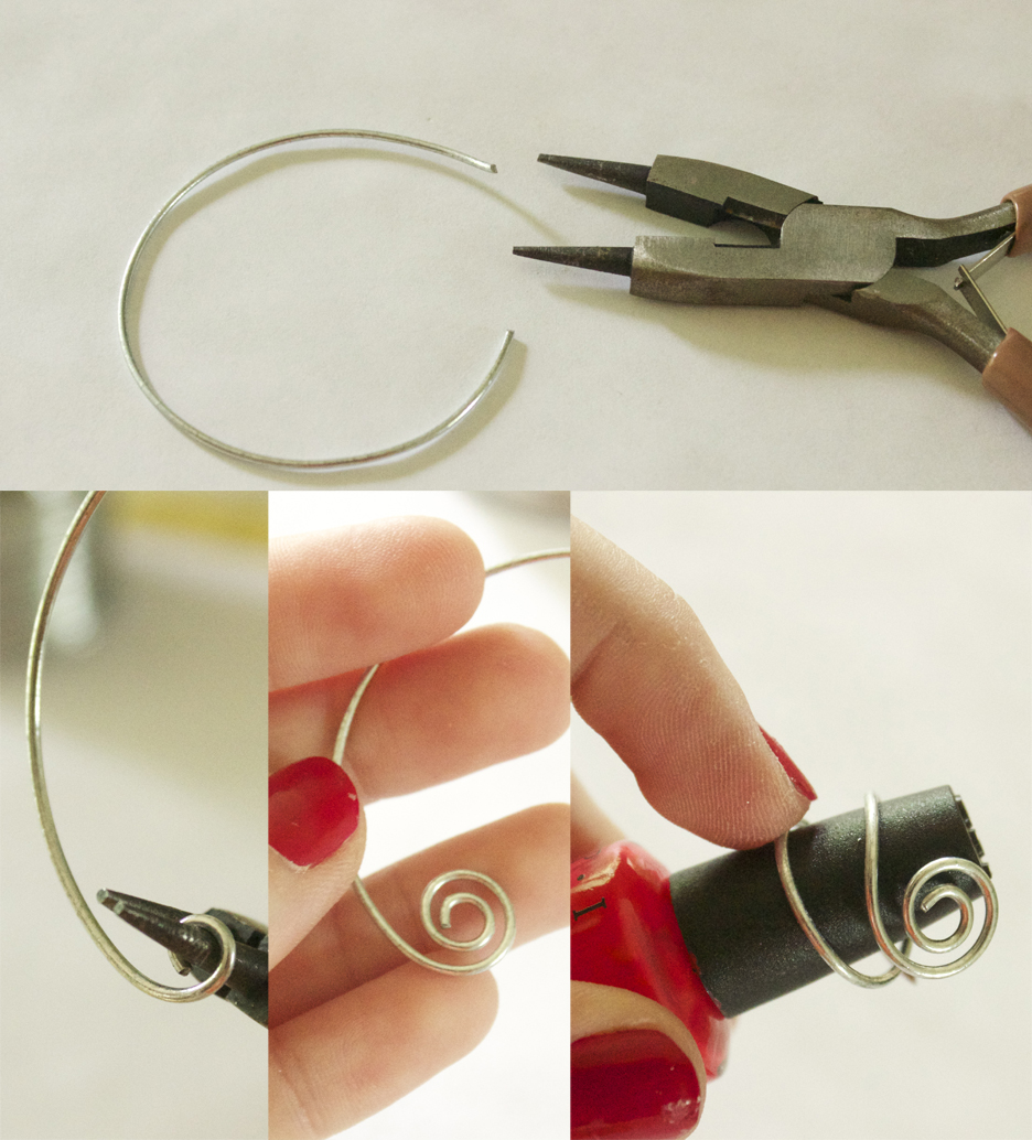 Here, I made one out of black wire and glued gems to the ends. This tutorial, I will be showing you how to make the super-simple silver wire one.