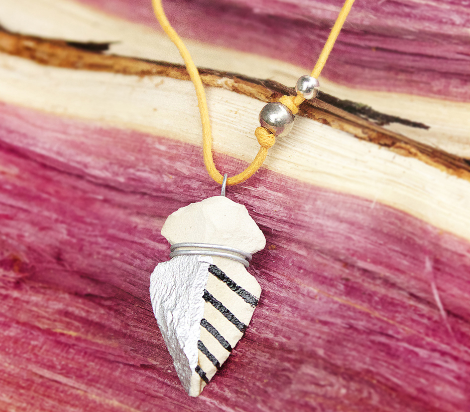 Step 4: Cut a length of cotton cord that's large enough to go over your head comfortably, plus 2 inches. String on your arrowhead, and if you choose, any beads. To lock the beads in place, tie two knots on either side. It looks cool to have the beads in an asymmetrical pattern! To close the necklace, tie a tight knot with both the strings, and glue this knot to seal.