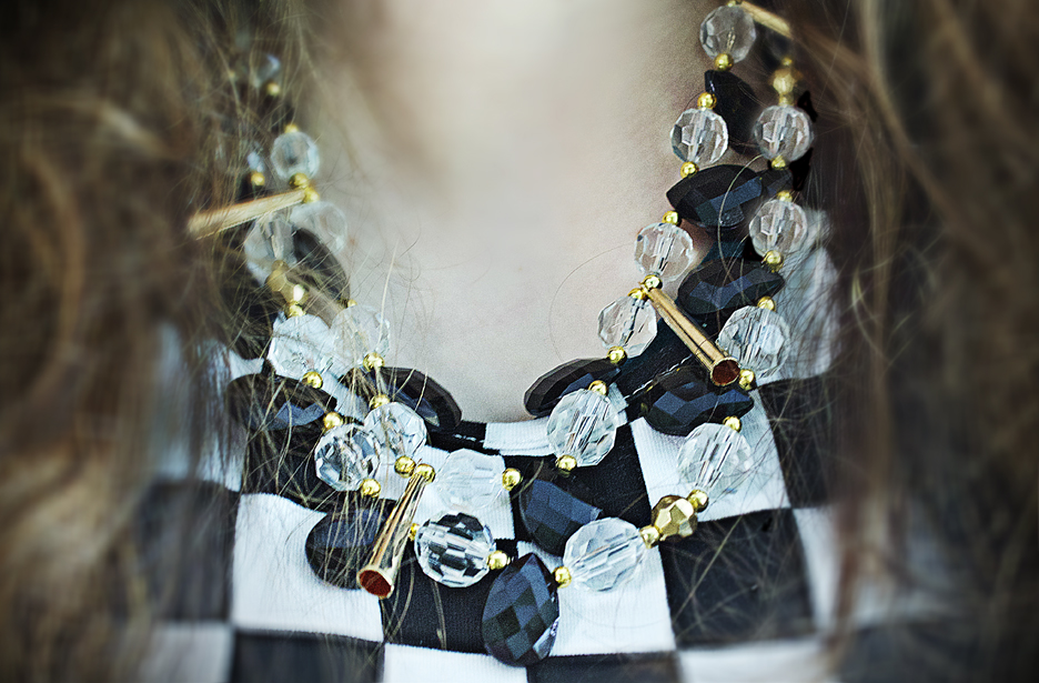 This really creates a statement! Pair with a totally on-trend black and white check dress (here, from Generation Bliss) and simple black peep-toe heels for a totally chic look!