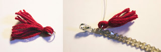 Cut off the ends horizontally, creating your tassel! Make sure all the ends are the same length. Add this jumpring onto your bracelet; finish by adding a crimp, then your clasp, and then thread back through the crimp. Pull the wire to tighten, and then crimp shut and cut the excess wire flush.