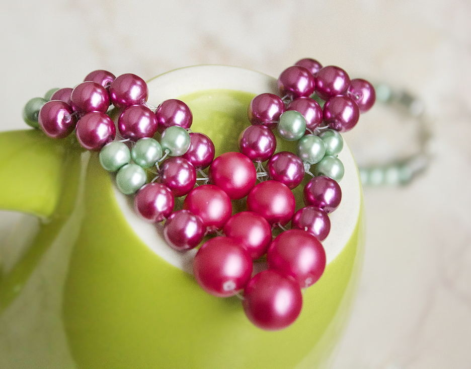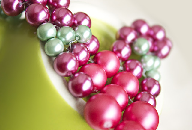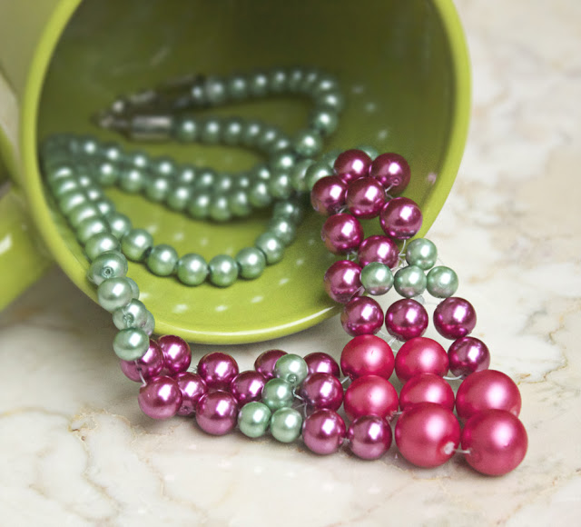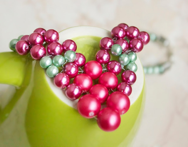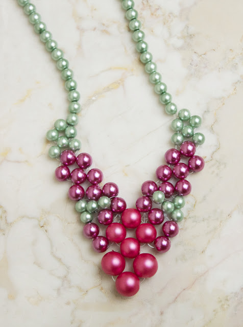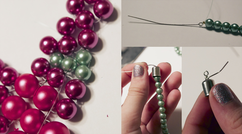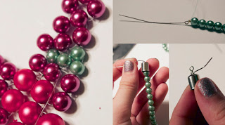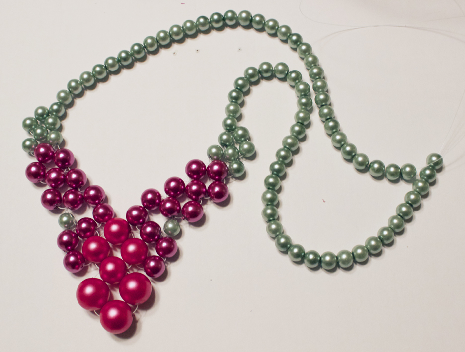 Step 9: Thread on green pearls, until the necklace is as long as you want!