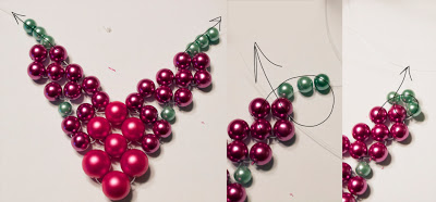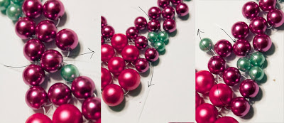 Step 4: Add on one green pearl (the 6mm one) and thread through the outermost beads in each cluster.