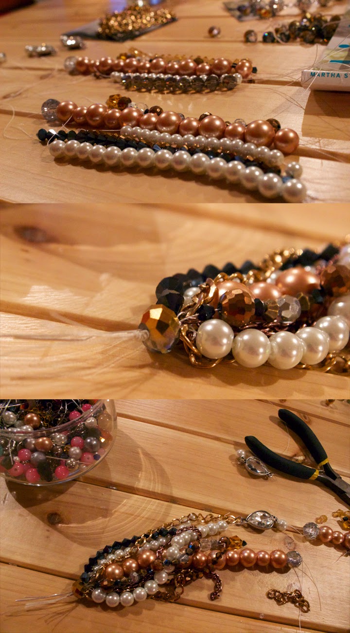 Step 1: Gather materials. I used a bunch of beads (pearls, crystals, glass beads) and chain. There is no certain amount of beads you need; I just threw together beads that complimented each other!