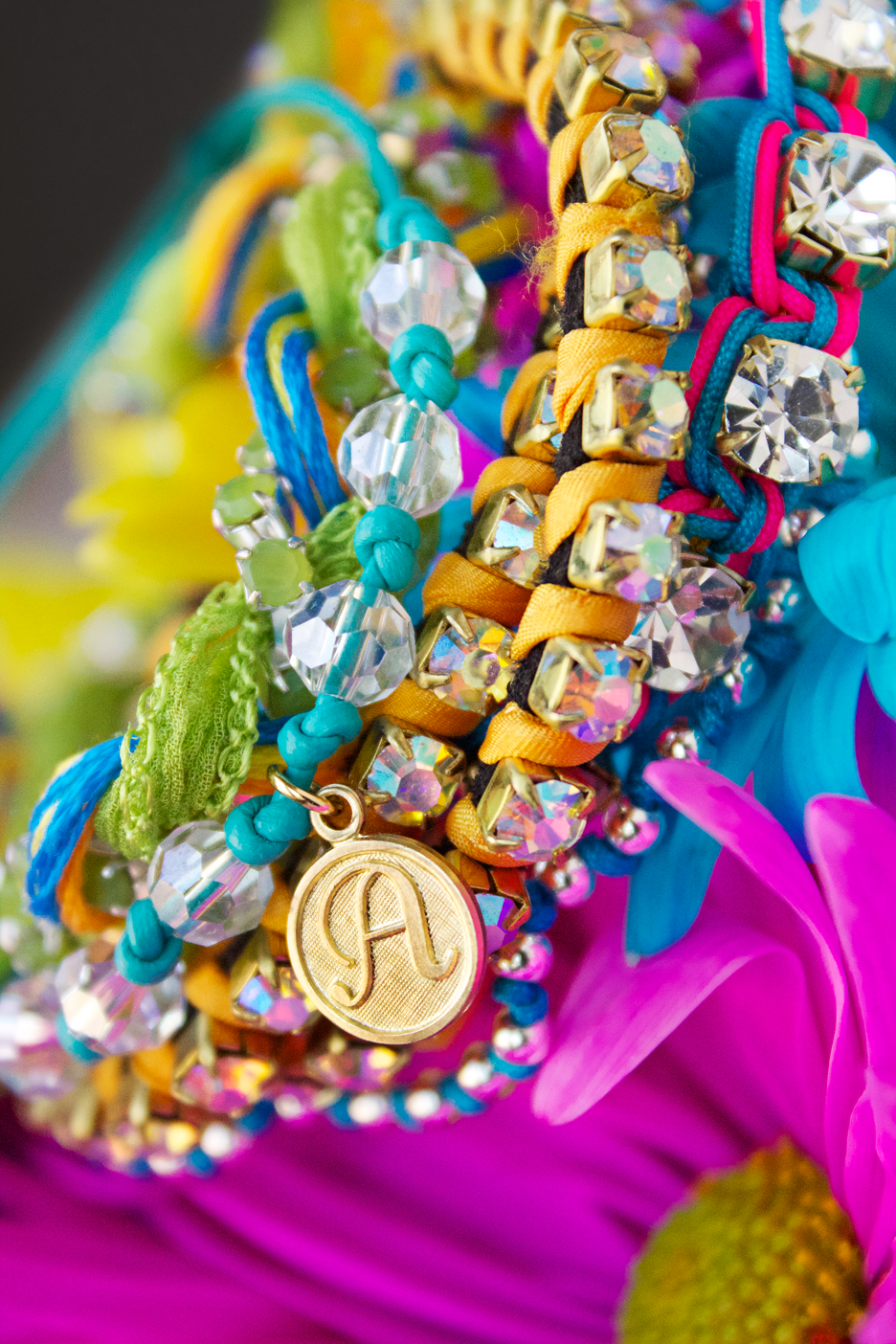 Some of these bracelets work up quicker than others, especially the dainty initial one. The initial charm is so lightweight yet intricate, perfect for making bracelets. It's always good to mix dainty and chunky, different textures and colors, and different shapes for a cool, contrasted look.